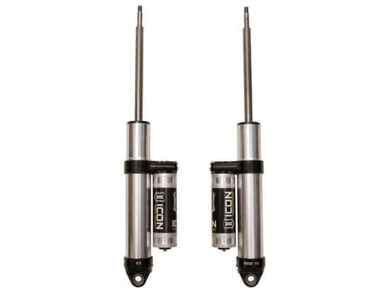 ICON Vehicle Specific (V.S.) 2.5 Series shocks are designed and built to give your vehicle outstanding performance off-road and a smooth ride on the street. These shocks are configured specifically for each application in both length and damping tune. Like all ICON shock absorbers, V.S. 2.5 Series shocks are 100% rebuildable and 100% revalveable. For piggyback and specific remote reservoir applications, ICON’s unique use of a 6061 billet aluminum manifold a few inches below the top cap of the shock creates an internal “Bump Zone” that when used creates an additional 20% of damping force. This additional force helps prevent harsh bottom outs and controls the suspension when compressing at high velocity. If you are looking for a more user defined tune, consider looking into the Compression Damping Control Valve (CDCV) shocks.This Part Fits: