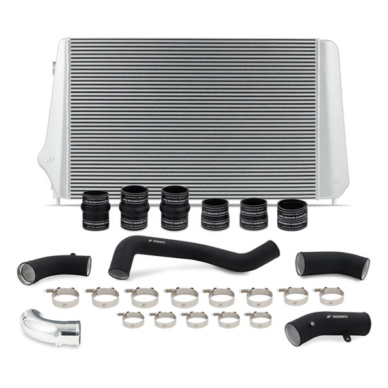 Built to handle heavy payloads, provide impressive performance, and execute years of reliable service, the 2017-2019 6.6L Duramax L5P is an absolute workhorse. However, as with any factory vehicle, some systems have limitations and areas that can be improved. Our engineering team has specifically identified the L5P's intercooler system as one of these areas. As a result, we've developed a performance intercooler kit for the 2017-2019 Chevrolet/GMC 6.6L Duramax L5P.This kit includes a massive 68mm-thick bar-and-plate intercooler with cast-aluminum end tanks and 3.0in mandrel-bent piping for maximum cooling and flow. Our intercooler is 70% thicker than stock and is designed to be a robust unit capable of withstanding high temperatures and boost pressures without cracking. In addition, our end tanks also feature larger inlets and outlets for even more flow. That, coupled with the larger intercooler core, reduces restriction by over 64% compared to the stock intercooler.Our kit also includes hot-side and cold-side intercooler piping with DuraCore boots and constant-tension T-bolt clamps. Our 3.0in mandrel-bent aluminum piping eliminates the restrictive stock resonator and improves flow by up to 55% over stock. The Mishimoto L5P Duramax intercooler pipes fit like stock thanks to the included CNC-machined quick-disconnect fitting with new O-rings and spring clip, bead-rolled pipe ends, and mounting locations for factory sensors and harnesses. Our pipes also include three bungs that can be drilled and tapped for sensors or water/meth injection.The Mishimoto 6.6L Duramax L5P Performance Intercooler Kit is a direct fit for your 2017-2019 Chevrolet or GMC HD truck and is a fantastic upgrade for both stock and heavily modified trucks. Like all our Duramax performance parts, this L5P intercooler kit is protected by our signature Mishimoto Lifetime Warranty.This Part Fits:
